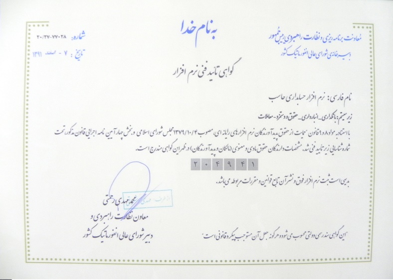 در این راستا، نرمافزار حسابداری حاسب ملی یکی از محصولات این شرکت است که با داشتن نسخههای متعددی مانند نسخه فروشگاهی، شرکتی، بازرگانی، تولیدی، بهای تمام شده، پیمانکاری، مدیریت مالی، مرکز هزینه، حسابداری شعب، انبارداری، پخش مویرگی، حقوق و دستمزد، قرض الحسنه و ... در حال حاضر بصورت حسابداری دوبل و در طرح های تک کاربری، تحت شبکه داخلی و همچنین تحت شبکههای اینترنتی در اختیار مشتریان قرار میگیرد.