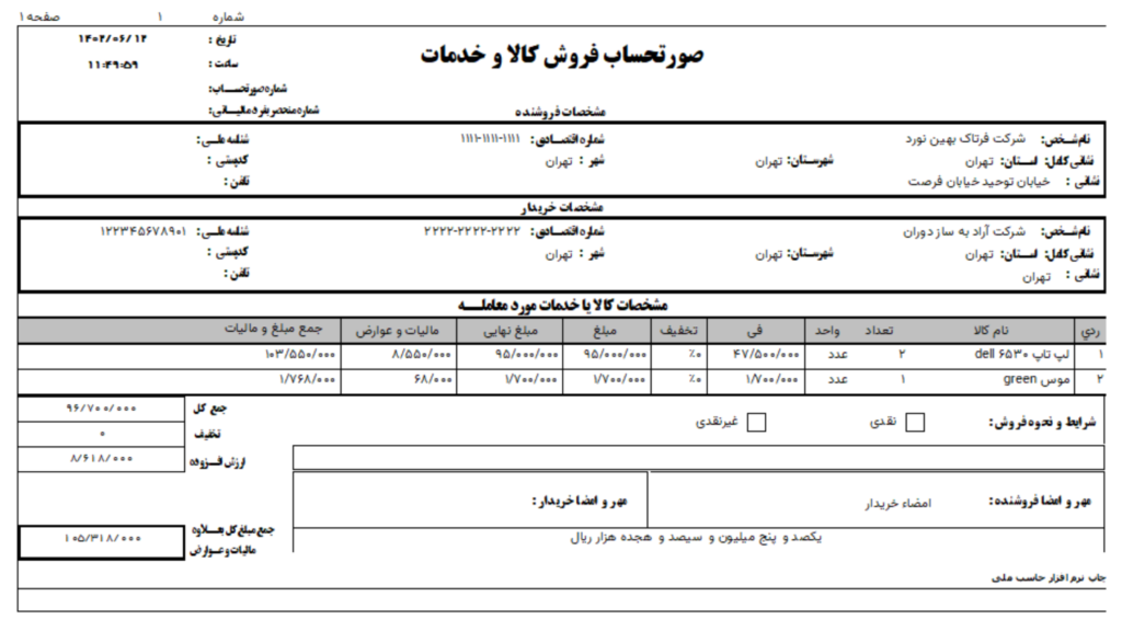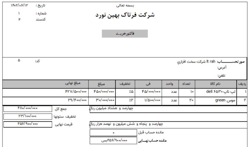 فاکتور خرید می تواند آرتیکل های متعددی داشته باشد از جمله، مالیات و عوارض ، تخفیف ، هزینه های حمل و… که هر کدام بنا به نیاز متغیر خواهد بود.